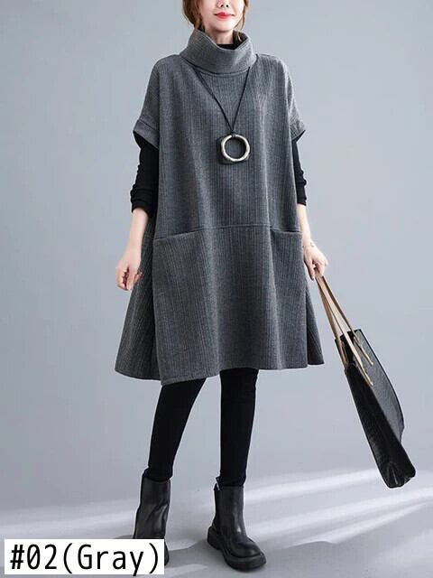 [EWQ] ヨーロッパスタイルタートルネックビッグサイズ半袖ドレスプルオーバーミドル丈ドレス 2024 春秋 16U7391 ショート ハーフスリーブ スプリング 春物 オータム 秋物 ヨーロピアン