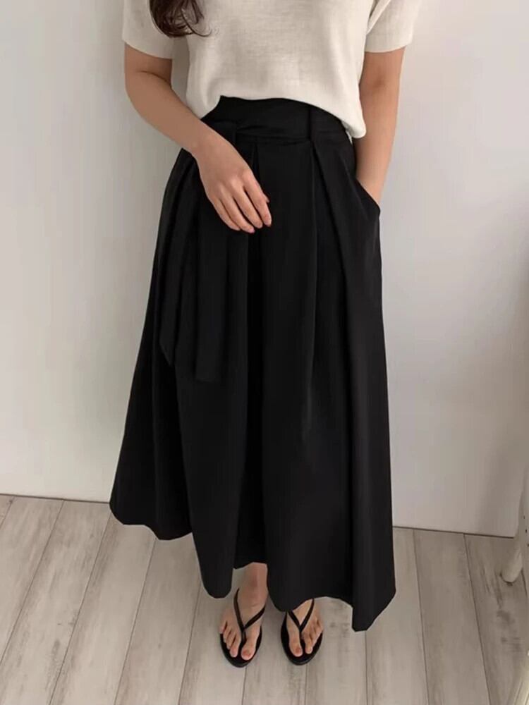 [EWQ] スタイルオールマッチウエストレースアップ大き裾スカート A ライン丈スカートレディース 2024 春秋 16U7645 スプリング 春物 オータム 秋物 Aライン