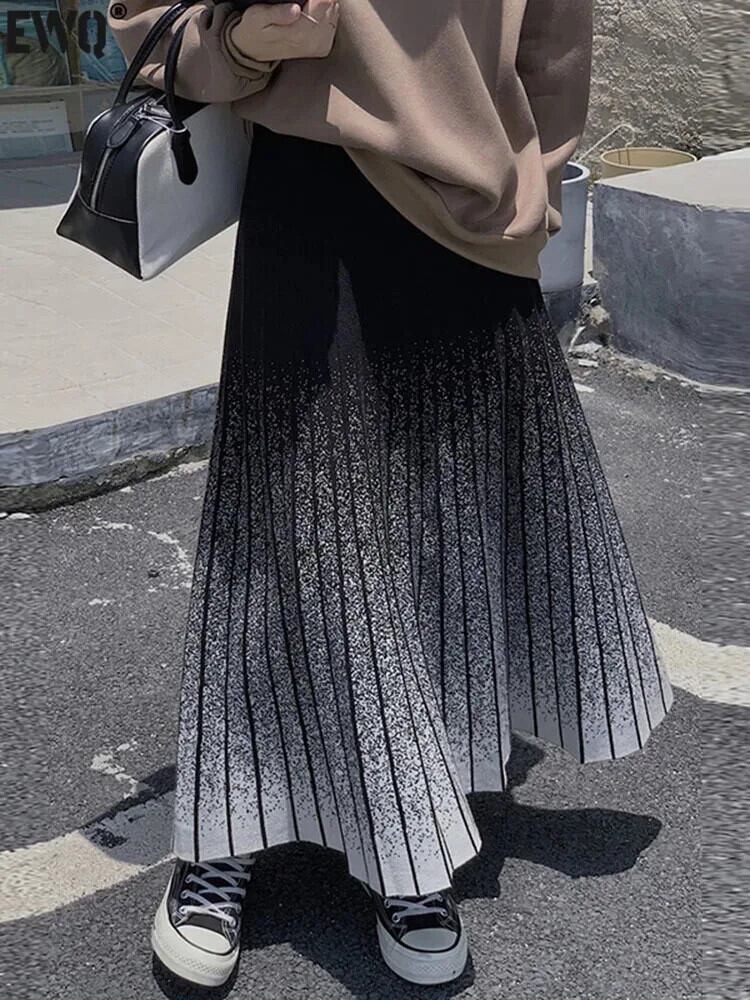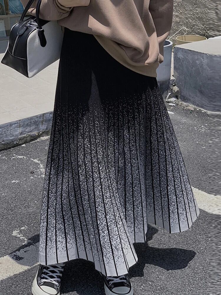 [EWQ] ウエストスリム オールマッチ 染めストライプ Aライン プリーツスカート レディース ハーフスカート 秋 春 16U6751 スプリング 春物 オータム 秋物
