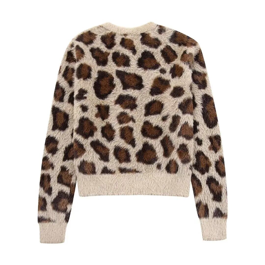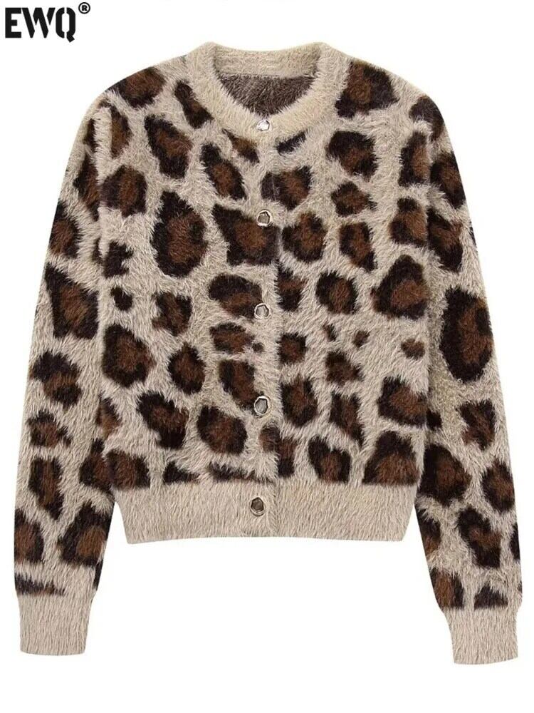 [EWQ] オーバーサイズ ニット カーディガン コート Y2k カシミヤ セーター ルーズ トップス O ネック 長袖 ヒョウ柄 2024 春 ロング スプリング 春物 Oネック
