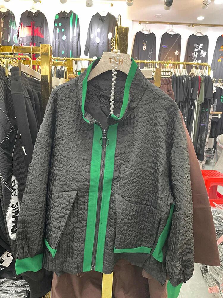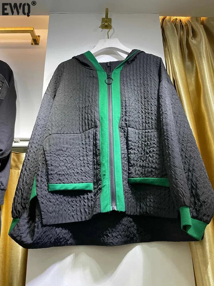 [EWQ] オーバーサイズ レディース ジッパー ルーズ オールマッチ コントラストカラー コート 長袖 ジャケット 2024 春秋 23A7746 ロング スプリング 春物 オータム 秋物