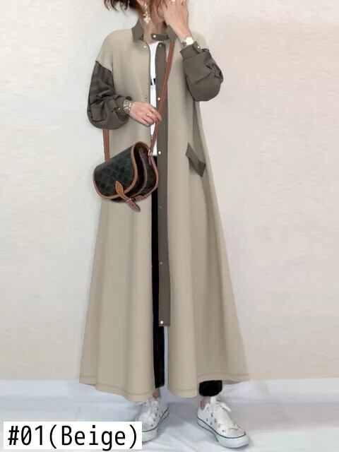 [EWQ] スタイルコントラストチェック柄パッチワークトレンチコートオールマッチ長袖ジャケット 2024 春秋 16U8011 ロング スプリング 春物 オータム 秋物