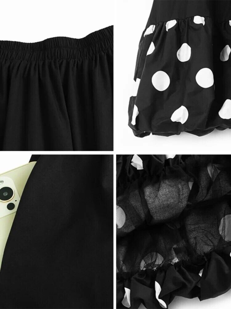 [EWQ] スタイル水玉裾弾性ウエストスカートルーズミッドレングスランタンスカート 2024 春秋 エラスティック 伸縮 スプリング 春物 オータム 秋物
