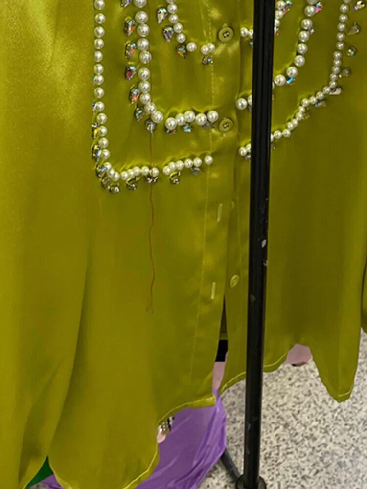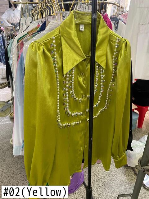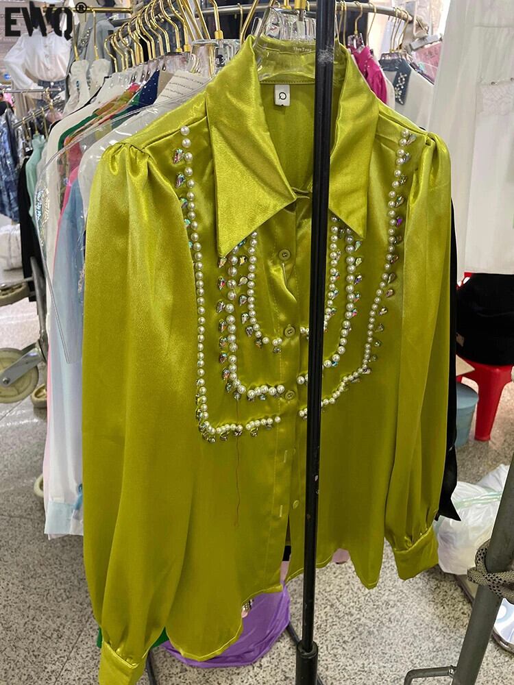 [EWQ] ストリート ダイヤモンド ビーズ ラペルカラー 無地 レディース 長袖 ブラウス シャツ 2024 春夏 16U8198 ロング スプリング 春物 サマー 夏物 ソリッドカラー