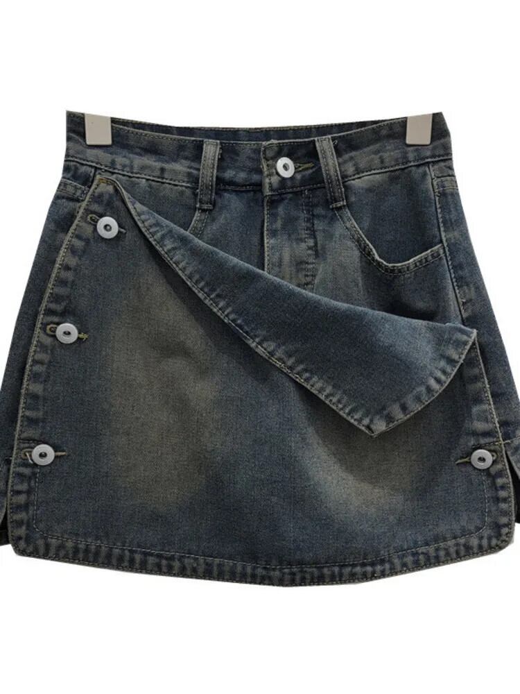 [EWQ] Y2K ユニークパッチワーク デニム ショート スカート ストリート オールマッチ ウエスト スカート レディース 2024 春夏 16U7610 スプリング 春物 サマー 夏物