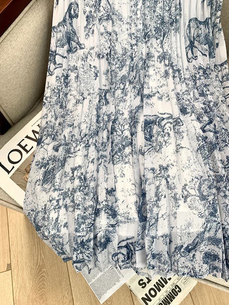 [EWQ] インクプリントウエストバンド半袖シャツドレスルーズロングスカートレディース 2024 春秋 16U7538 ショート ハーフスリーブ スプリング 春物 オータム 秋物