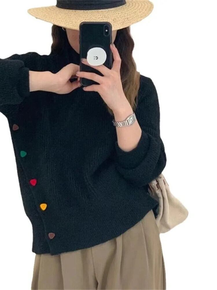 [EWQ] 美しいタートルネックカラフルボタンベーシックプルオーバーセーター長袖暖かいジャンパー 2024 春冬 16U7086 ロング スプリング 春物 ウィンター 冬物