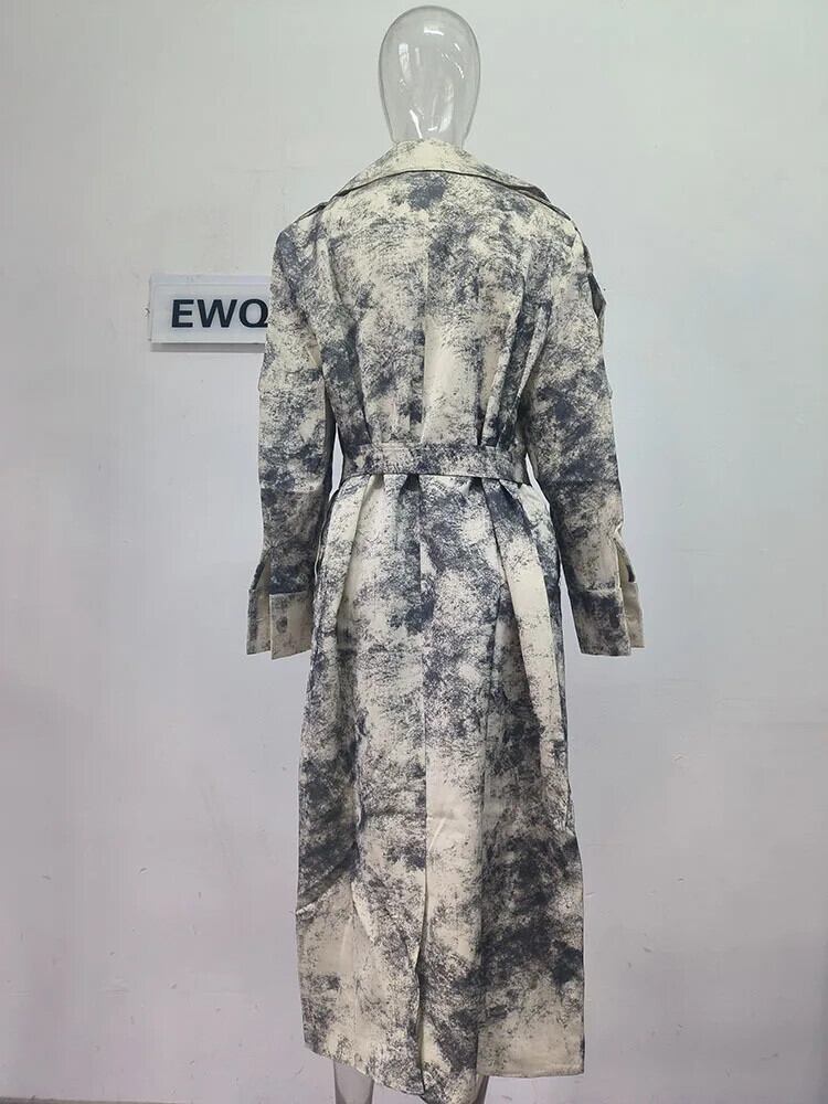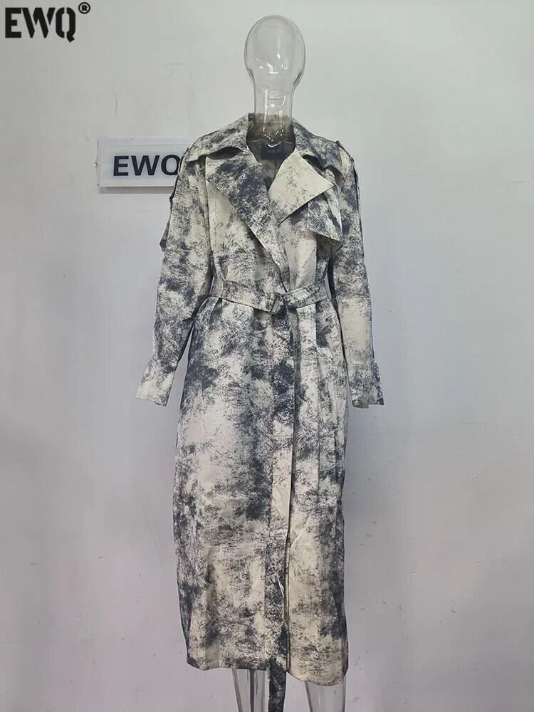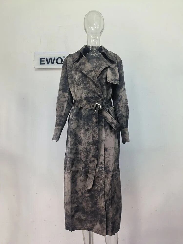 [EWQ] 気質アップ 長袖 シフォン ラペル ベルト ボタン レディース ウインドブレーカー アウター ジャケット 2024 春秋 16U8265 ロング スプリング 春物 オータム 秋物 ハーネス