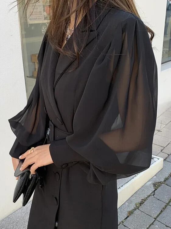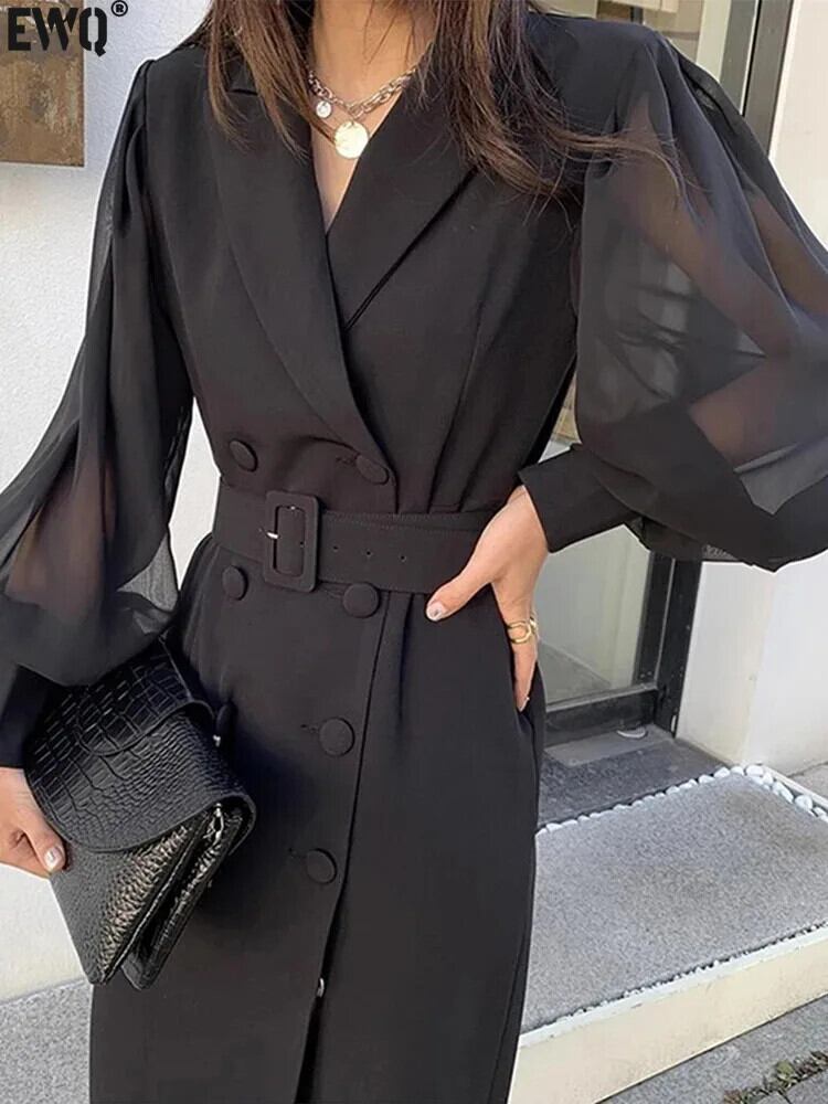 [EWQ] シックダブルブレストランタンスリーブベルトブレザードレスウエストドレス 2024 春夏 6U7955 スプリング 春物 サマー 夏物 ハーネス