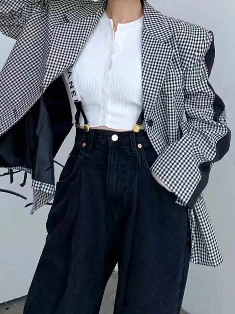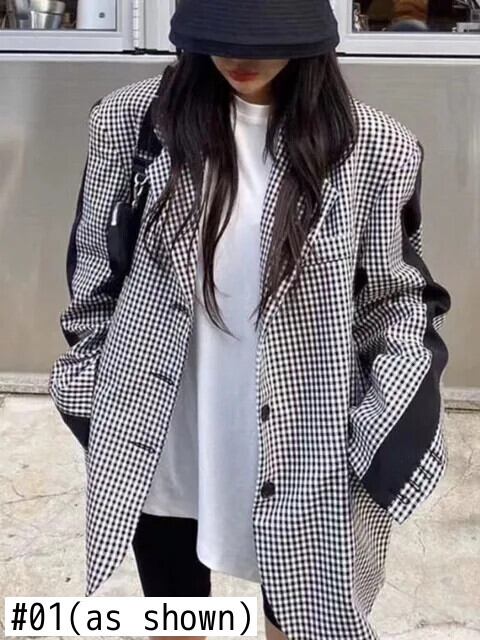 [EWQ] チェック柄コントラストカラーパッチワークスーツジャケットアウターコートレディース 2024 春秋 16U8276 スプリング 春物 オータム 秋物