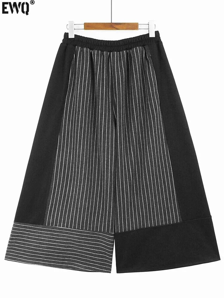 [EWQ] スタイルストライプパッチワークワイドレッグパンツオールマッチ足首丈パンツレディース 2024 春夏 6U8148 スプリング 春物 サマー 夏物 ワイドパンツ
