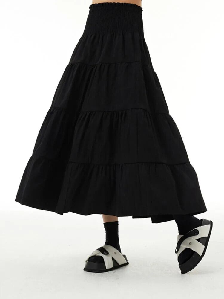 [EWQ] ヨーロピアンプリーツソリッドカラーブラックカーキスカート商品可能スプライスレディースワンピース2024春夏16U8575 スプリング 春物 サマー 夏物