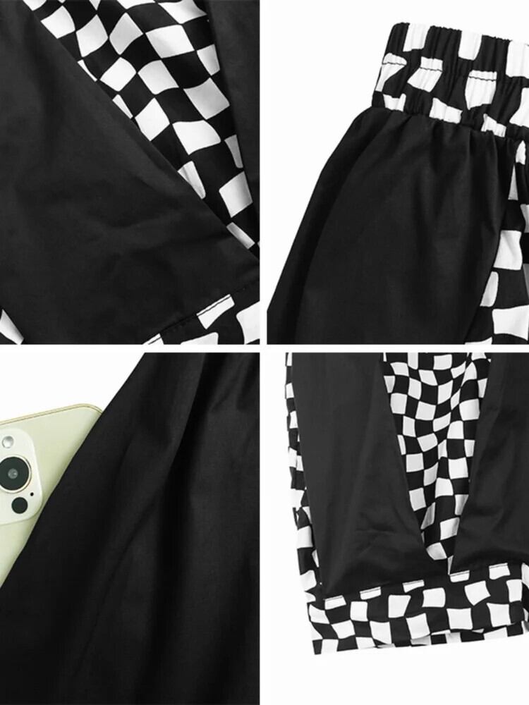 [EWQ] ストリート パッチワーク チェック柄 薄手 ワイドレッグ パンツ プリーツ ルーズ ミモレ丈 パンツ 2024 春夏 16U8166 スプリング 春物 サマー 夏物 ワイドパンツ
