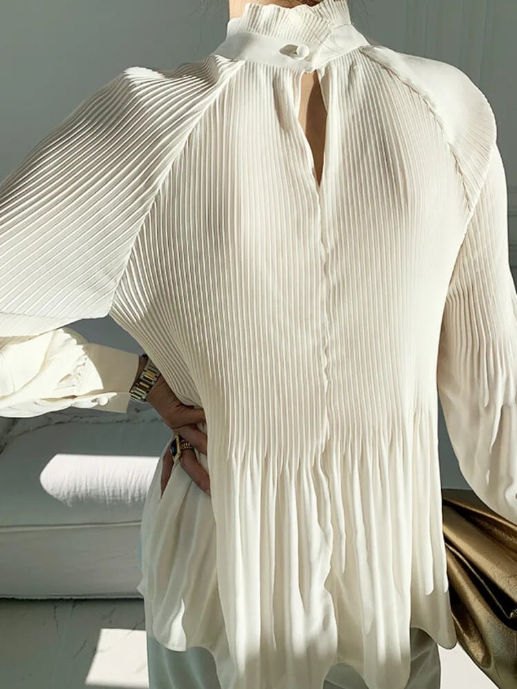 [EWQ] レディース シック 折り目 スタンド ネック クラフト プリーツ ルーズ ソリッド カラー 万能 ランタン スリーブ シャツ トップス 2024 春夏 U8571 ランタンスリーブ スプリング 春物 サマー 夏物 ソリッドカラー