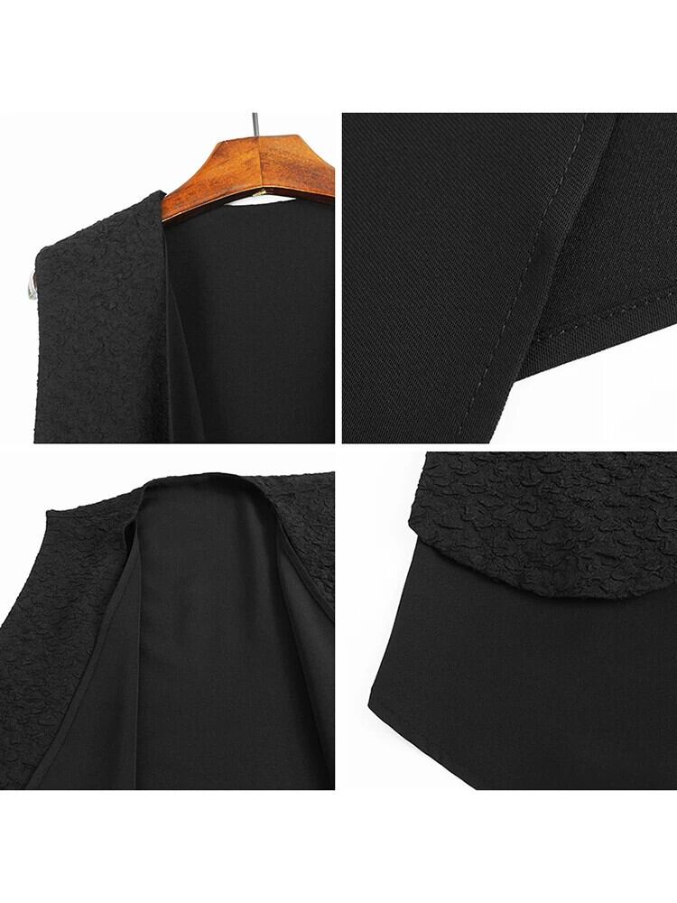 [EWQ] スタイルテクスチャフェイクツーピースボタンレスカーディガンベスト黒チョッキ 2024 春秋 U7206 ブラック スプリング 春物 オータム 秋物