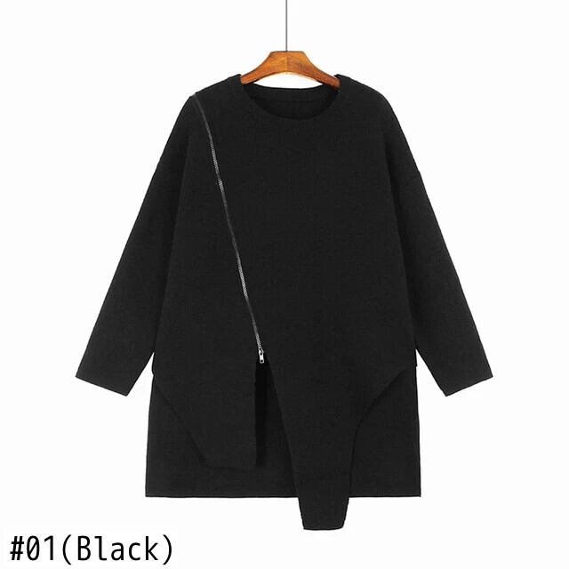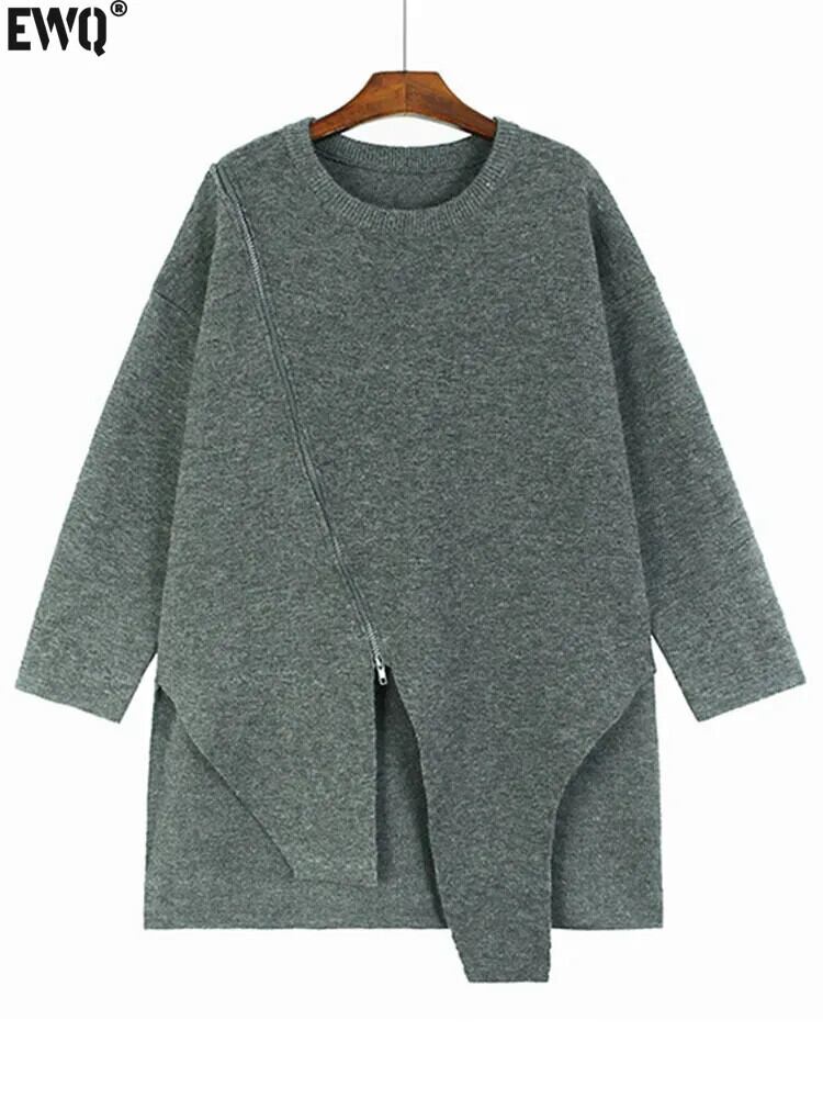[EWQ] イレギュラーヘムソリッドカラー O ネックプルオーバーセータールーズ肥厚ニットトップ 2024 春秋 16U7187 スプリング 春物 オータム 秋物 Oネック