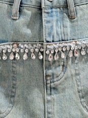 [EWQ] Y2k ダイヤモンド象嵌ビーズウエストテル A ラインデニムショートスカート レディース ボトムス 2024 春夏 6U8875 スプリング 春物 サマー 夏物 Aライン