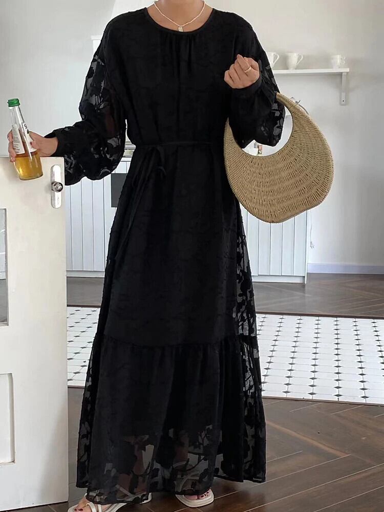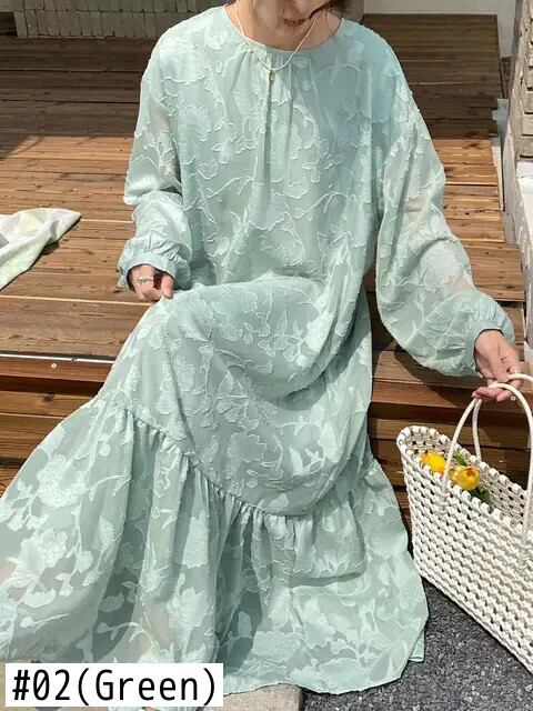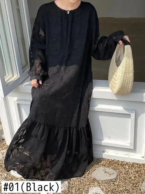 [EWQ] オーバーサイズ O ネック長袖ルーズレースアップ美しい花柄ドレスレディースマルチカラー 2024 春夏 16U8354 ロング スプリング 春物 サマー 夏物 Oネック フラワーデザイン