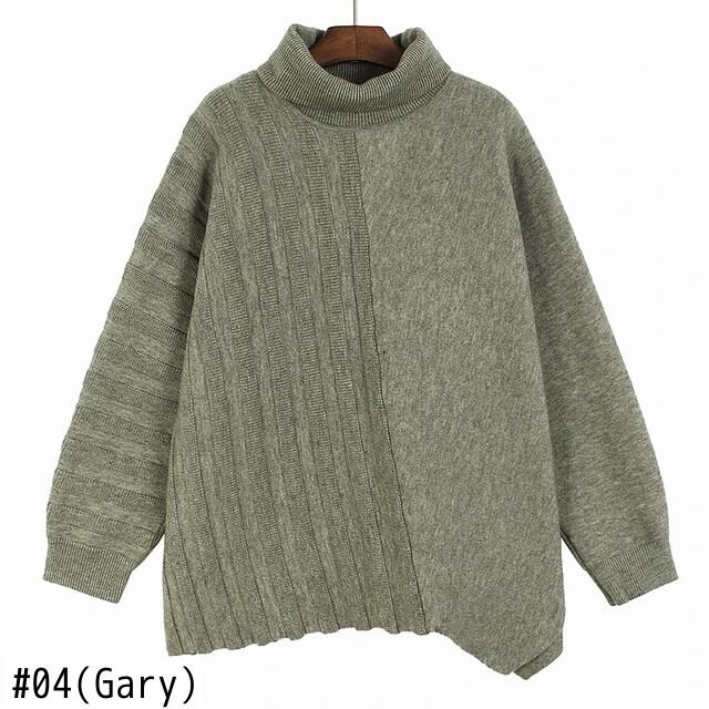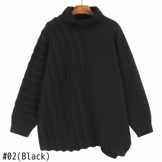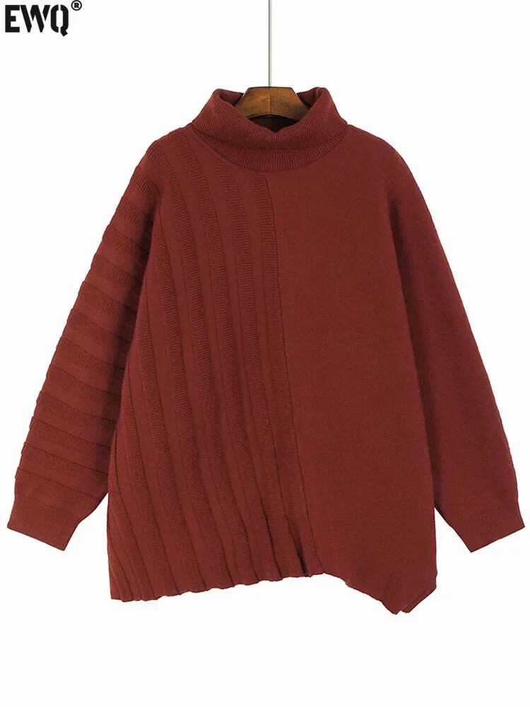 [EWQ] ユニークソリッドカラー不規則プルオーバータートルネックセータールーズ厚みすべて一致トップ 2024 春秋 7207 スプリング 春物 オータム 秋物
