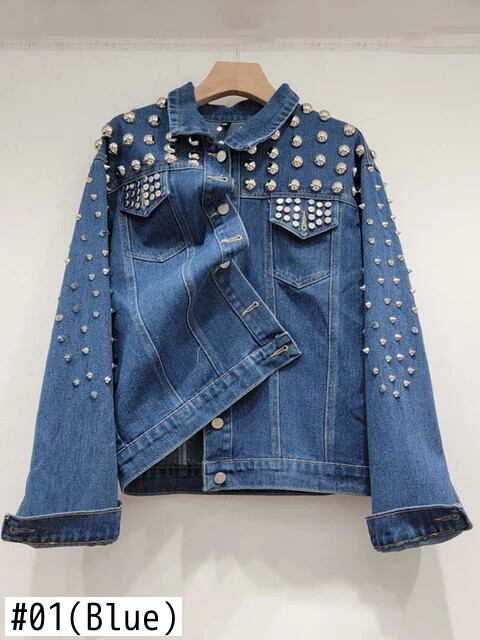 [EWQ] パンクスタイルリベットシングルブレストラペルデニムジャケット Y2K ルーズオールマッチコート 2024 春秋 U7606 スプリング 春物 オータム 秋物