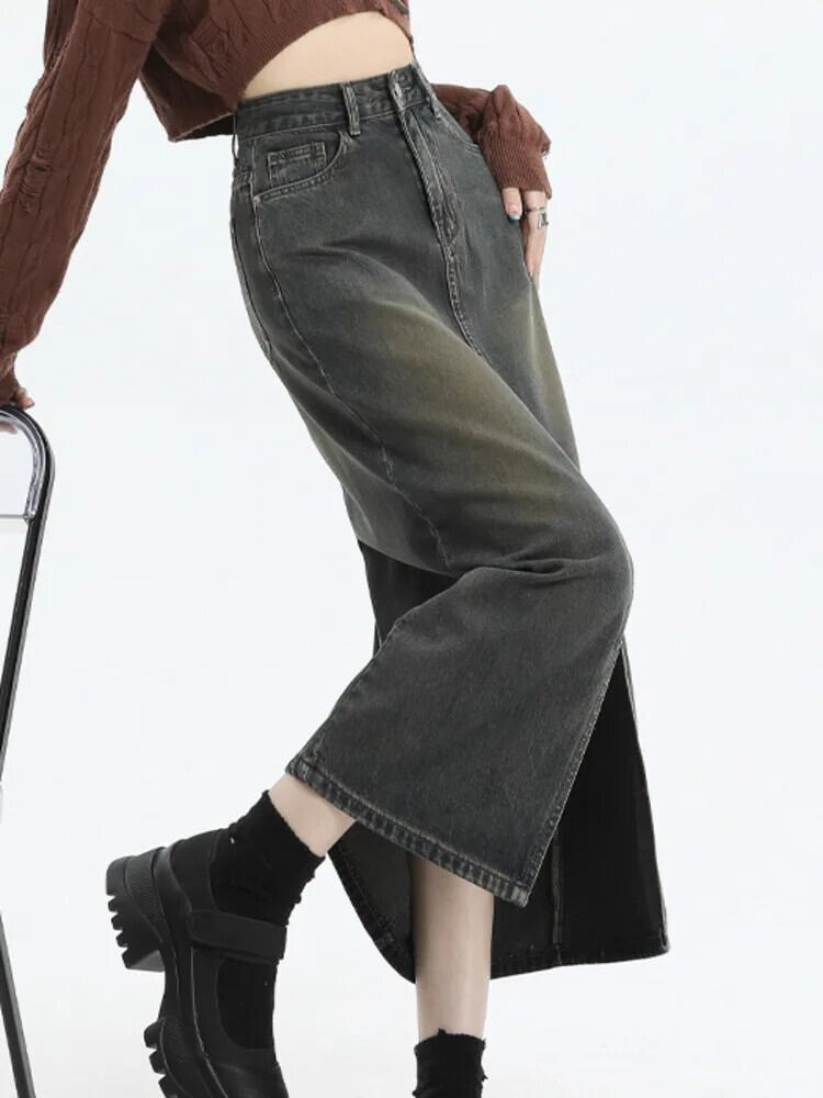 [EWQ] 商品分割ジッパーポケット婦人ルーズウエストAラインデニムスカート2024春夏16U8281 スプリング 春物 サマー 夏物