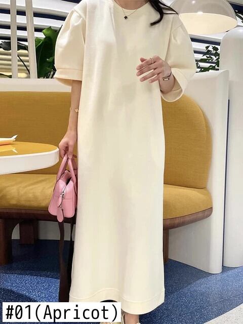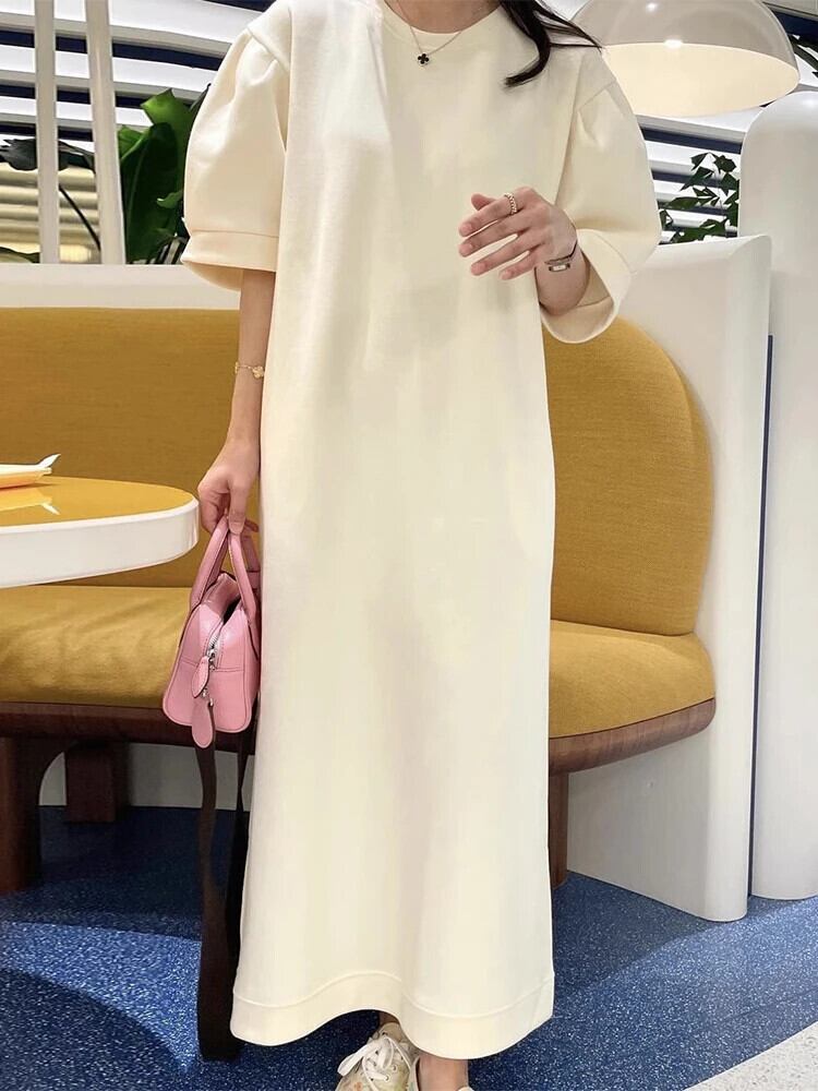 [EWQ] シック O ネックルーズポケットロング無地半袖パーカートレーナードレス 2024 春夏 16U8523 ショート ハーフスリーブ スプリング 春物 サマー 夏物 Oネック ソリッドカラー