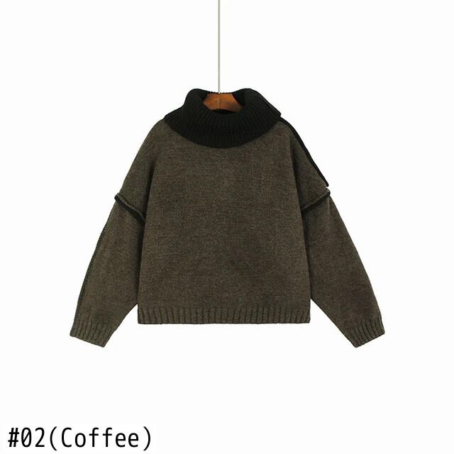[EWQ] ヨーロッパスタイル Y2K パッチワーク ジッパー ネック プルオーバー ニット ジャンパー 厚手 暖かい ルーズ トップ 2024 春 冬 7030 スプリング 春物 ウィンター 冬物 ヨーロピアン
