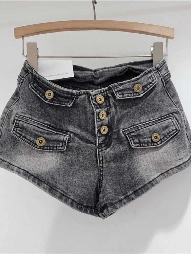 [EWQ] アメリカンレトロストリートボタンデニムショートパンツセクシーオールマッチAラインワイドレッグホットパンツレディース2024春夏6U7618 スプリング 春物 サマー 夏物 ショーツ ブルマー ワイドパンツ