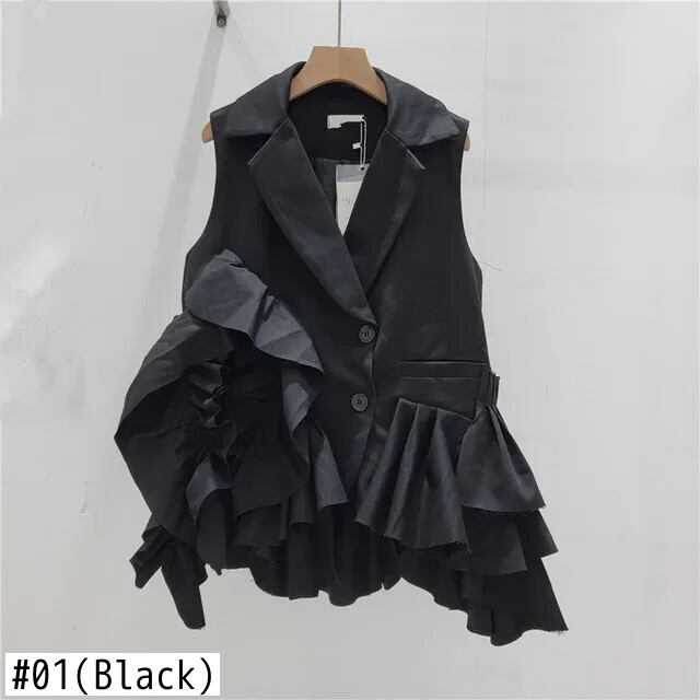 [EWQ] ヨーロッパスタイル不規則パッチワークフリルベストオールマッチスーツ襟カーディガントップ 2024 春秋 6U7985 スプリング 春物 オータム 秋物 ヨーロピアン