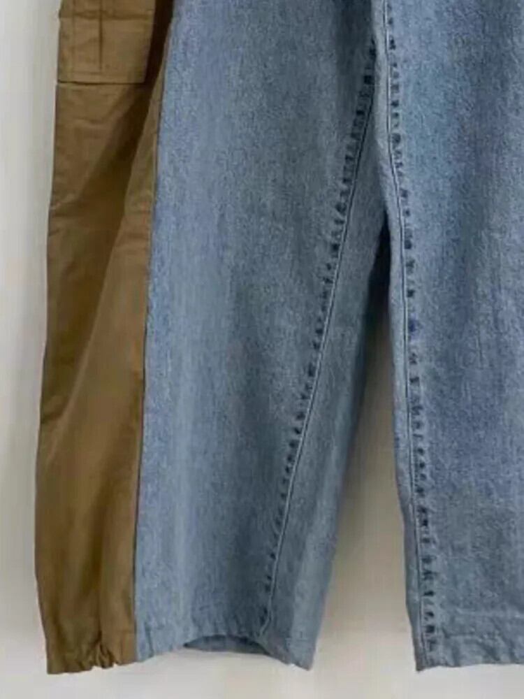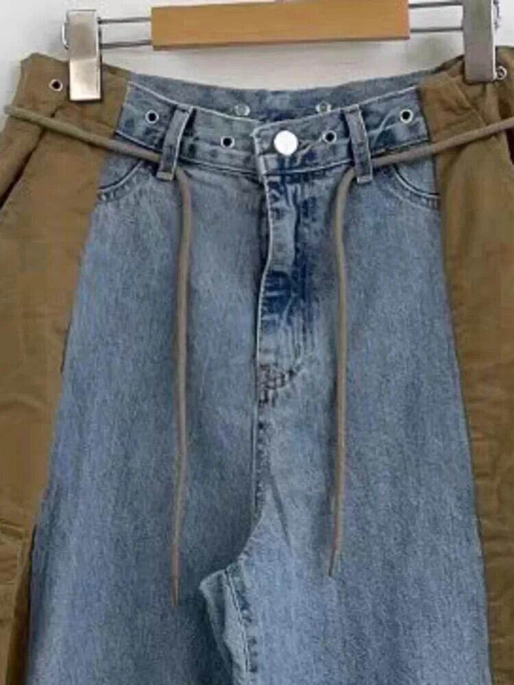 [EWQ] ストリート ウエストトラウザー コントラストカラー パッチワーク ストレート ワイドレッグ ドローストリング パンツ 2024 春秋 U8340 スプリング 春物 オータム 秋物 ワイドパンツ