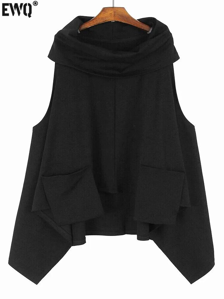 [EWQ]スタイルヒープカラープルオーバーノースリーブTシャツルーズイレギュラーオールマッチトップス2024春秋U7473 スプリング 春物 オータム 秋物