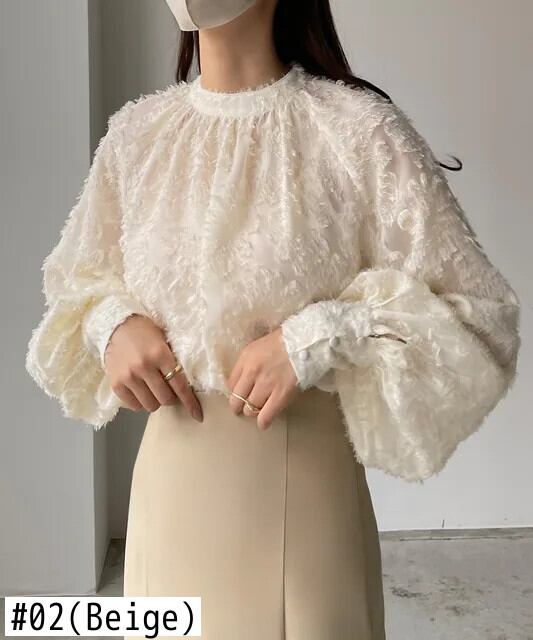 [EWQ] スタイルソリッドカラーフェザー O ネックシャツスイートオールマッチランタンスリーブブラウス 2024 春秋 16U7974 大人ガーリー スウィート キュート カジュアル スプリング 春物 オータム 秋物 Oネック