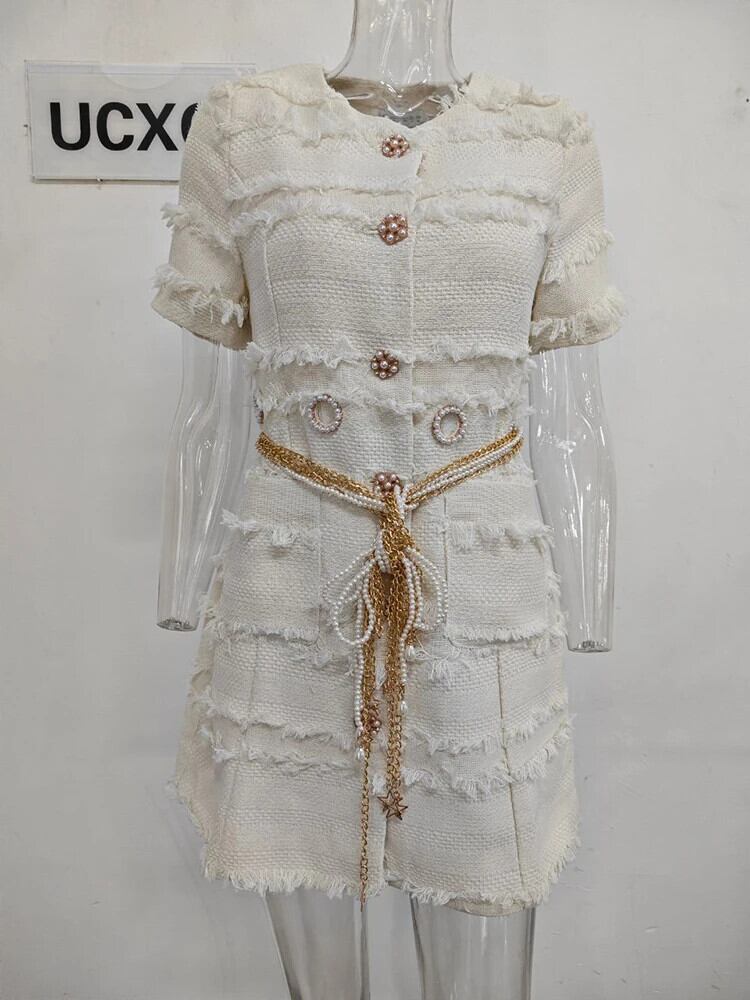 [EWQ] レディース 刺繍ボタン チェーンバリ スリム ワンピース 半袖 Vestido 2024 春夏 23A1939 ショート レッド ハーフスリーブ スプリング 春物 サマー 夏物