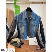 [EWQ] ストリートパッチワーク長袖コントラストシングルブレストラペルデニムジャケットレディーストップス 2024 春秋 U8339 ロング スプリング 春物 オータム 秋物