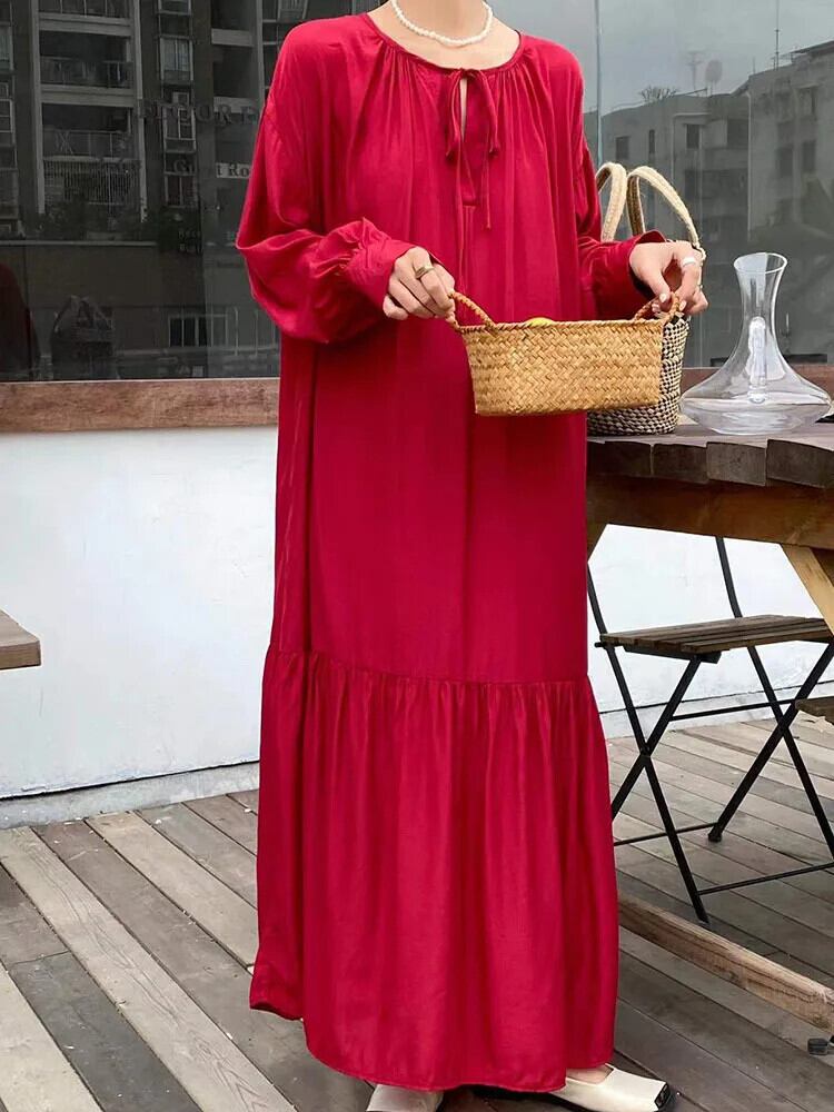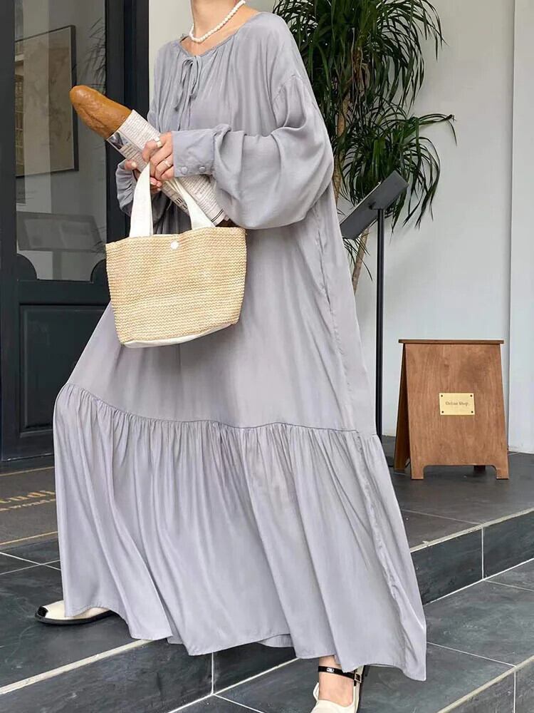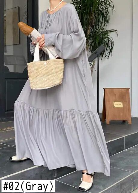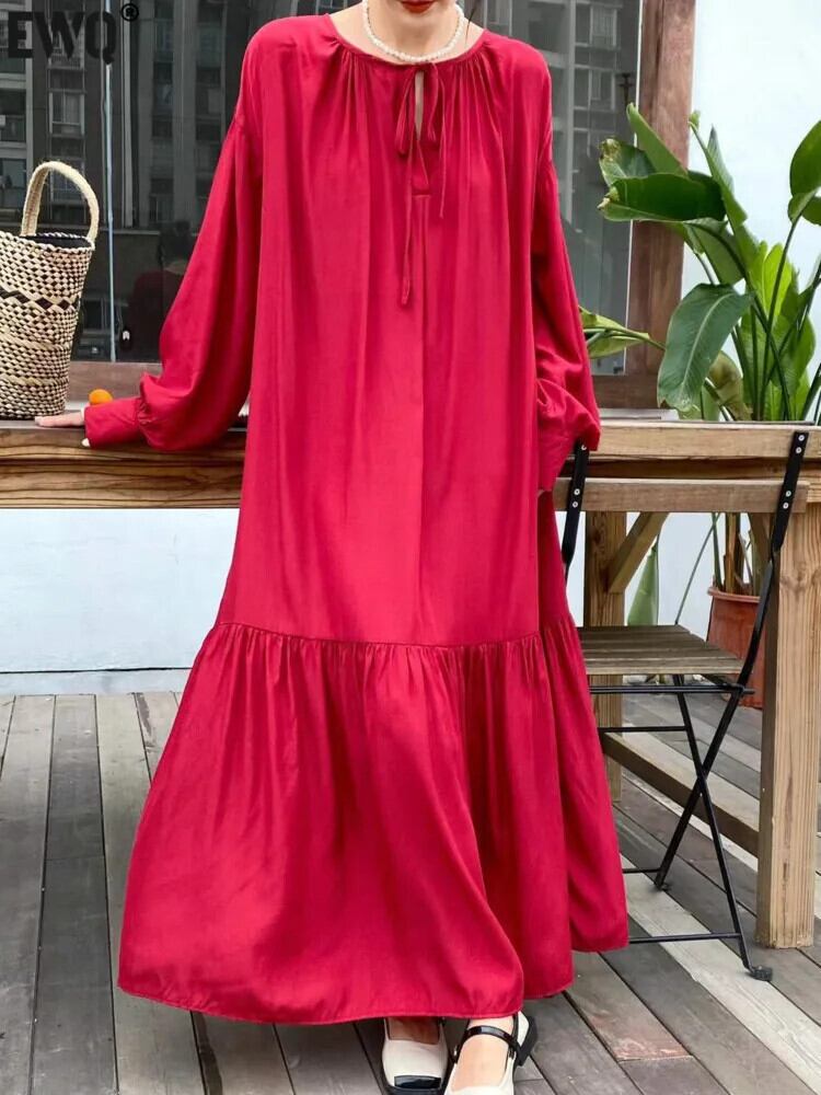 [EWQ] オーバーサイズ シック 無地 レディース ゆったり 長袖 Oネック シンプル ワンピース 2024春夏 16U8358 ロング スプリング 春物 サマー 夏物 ソリッドカラー