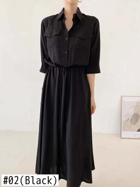 [EWQ] スタイルラペル巾着レースアップシャツドレスオールマッチロングドレス 2024 春夏 16U7970 スプリング 春物 サマー 夏物