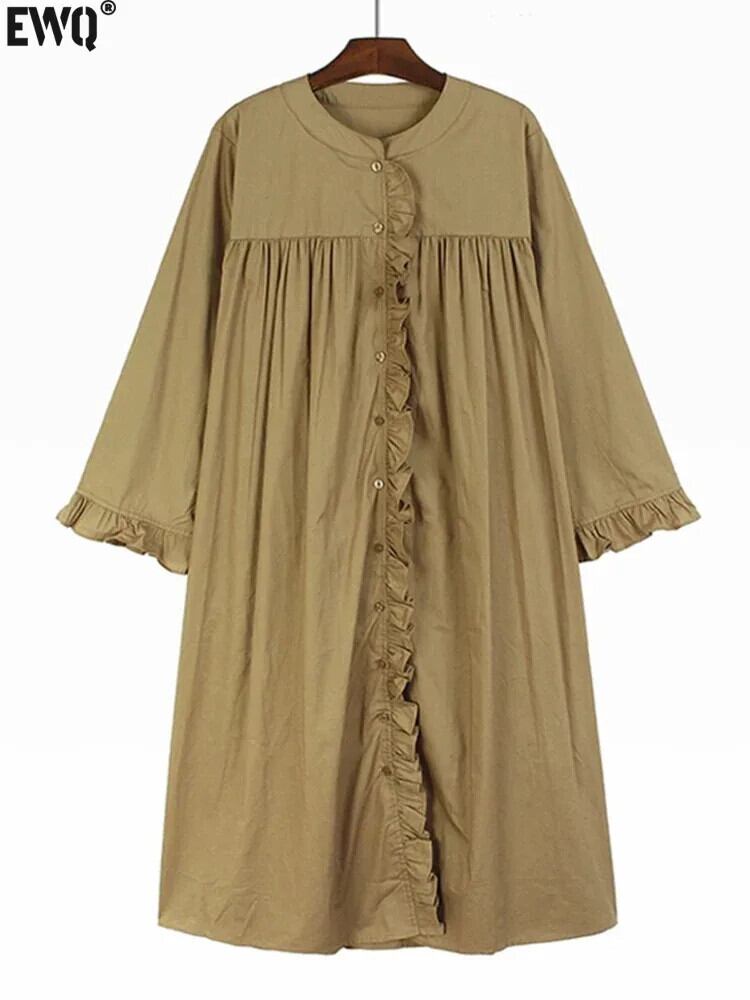[EWQ] レースビッグサイズソリッドカラードレスミドル丈カーキ A ラインドレス 2024 春夏 U8165 スプリング 春物 サマー 夏物 Aライン