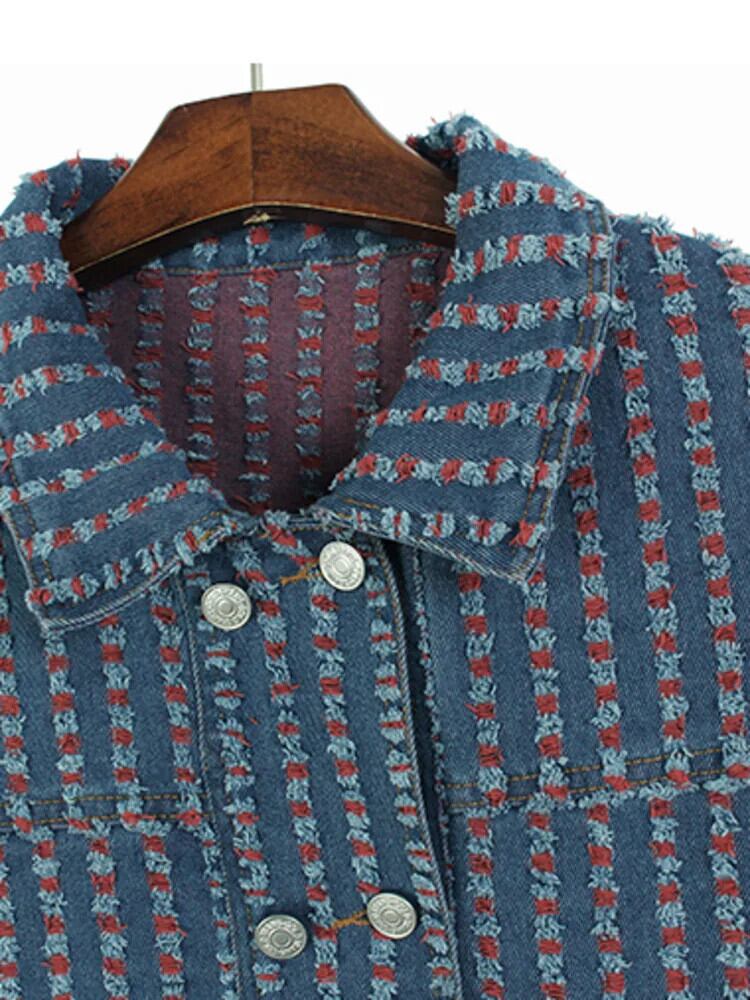 [EWQ] スタイルコントラストカラー長袖デニムジャケットルーズオールマッチカーディガントップ 2024 春秋 8157 ロング スプリング 春物 オータム 秋物