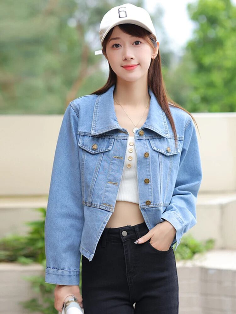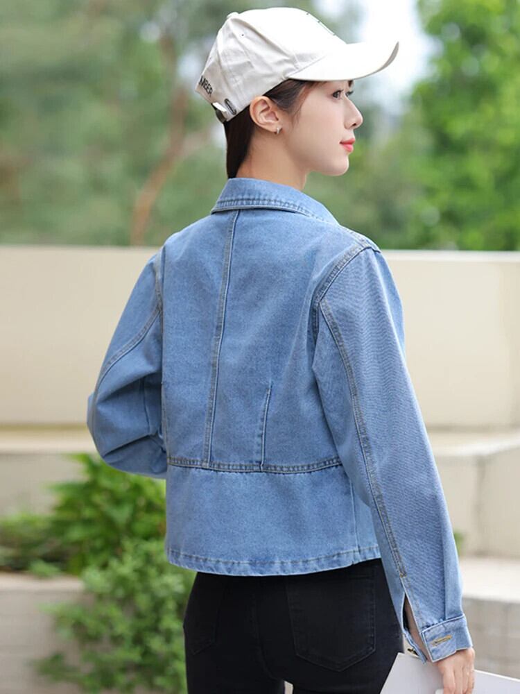 [EWQ] バージョン ラペル デニム トップス オールマッチ レディース シングルブレスト ブルー アウター ジャケット 2024 春夏 16U8248 スプリング 春物 サマー 夏物