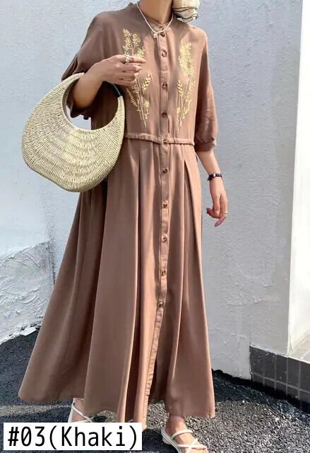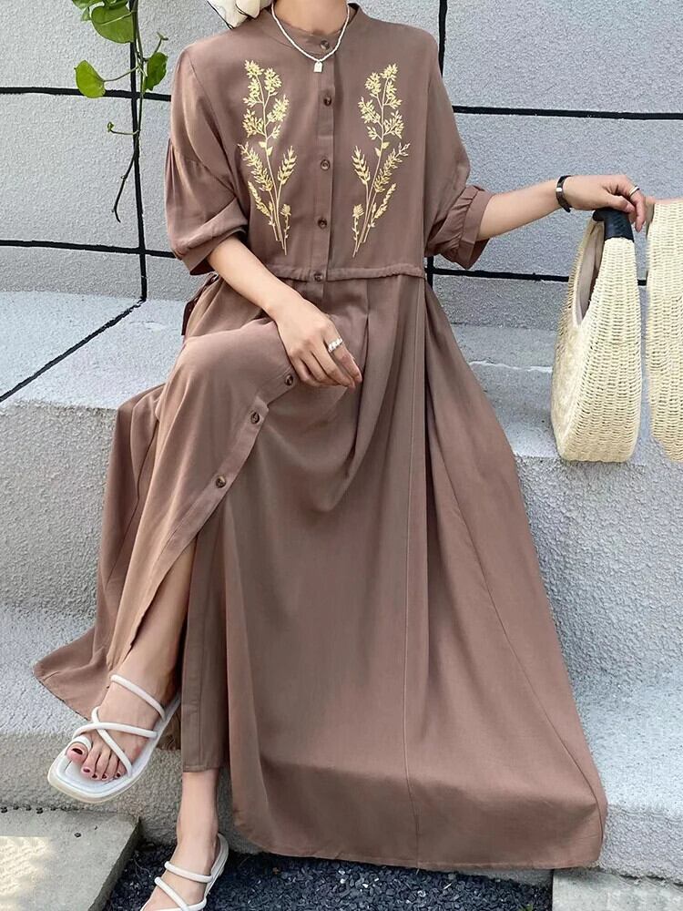 [EWQ] 大きいサイズ ゆったり エスニック風 五分袖ロングワンピース オーバーサイズ レースアップ レディース 2024春夏 16U8356 半袖 ハーフスリーブ 大きめサイズ スプリング 春物 サマー 夏物