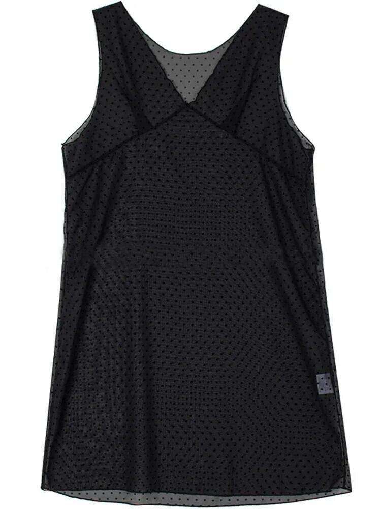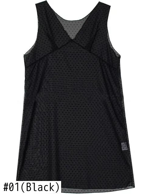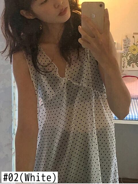 [EWQ] シック透明 V ネック ノースリーブ コントラスト ベース ミニ ワンピース ポルカ 婦人 2024 春夏 16U8268 スプリング 春物 サマー 夏物 Vネック
