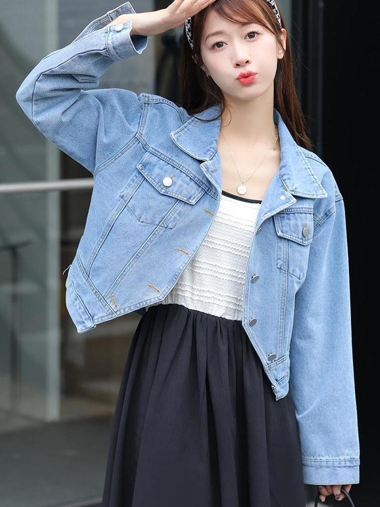 [EWQ] スタイル ソフト デニム ショート ジャケット アウター ラペル ポケット ブルー コート レディース トップス 2024 春夏 16U8252 スプリング 春物 サマー 夏物