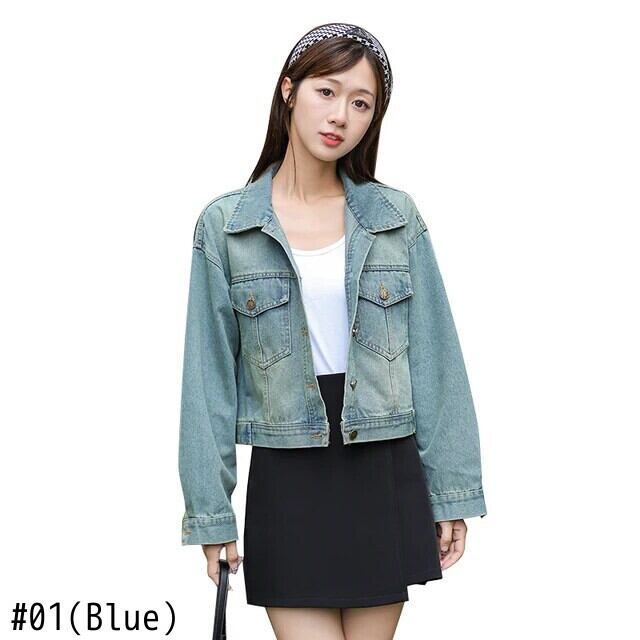 [EWQ] シングルブレスト ラペル ブルー デニム ジャケット レディース オールマッチ アウター ジージャン コート トップス 2024 春夏 16U8246 スプリング 春物 サマー 夏物
