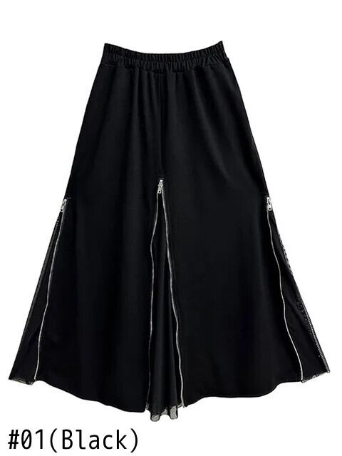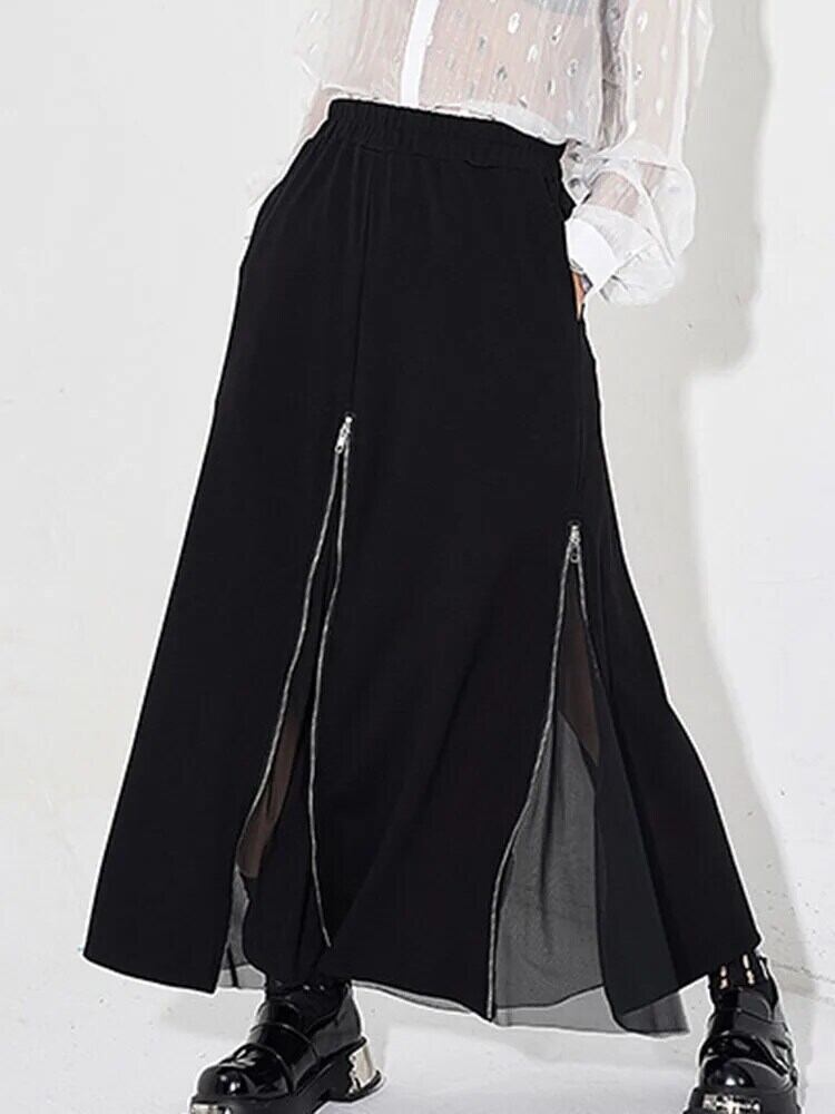 [EWQ] 黒 Y2k ジッパースプライシングメッシュルーズスカート レディース シンプル オールマッチ Aラインスカート 2024春夏 16U8584 ブラック スプリング 春物 サマー 夏物