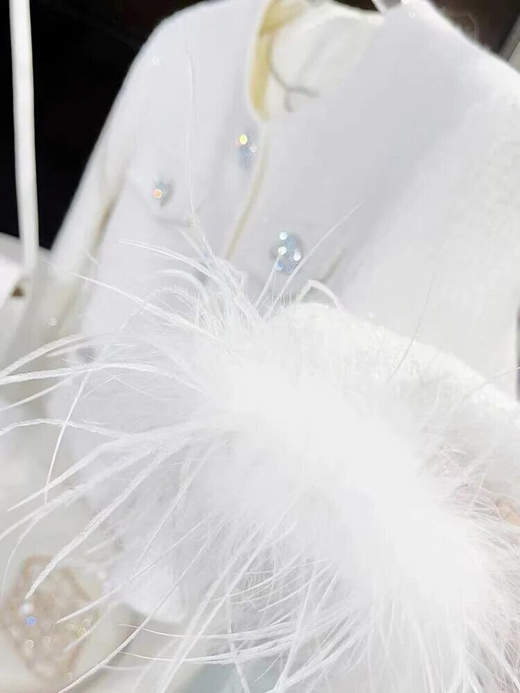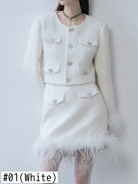 【EWQ】ホワイトフェザー テルネイル ダイヤモンド Oネック オーストリッチファー レディース ショートコート ショートスカート 2点セット 秋冬 16U6151 オータム 秋物 ウィンター 冬物