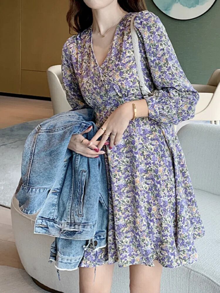 [EWQ] スタイル美しいプリント V ネックホリデードレスミッドレングスドレス 2024 春夏 23A7752 スプリング 春物 サマー 夏物 Vネック