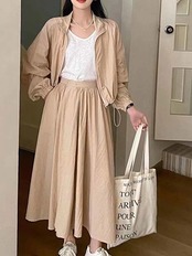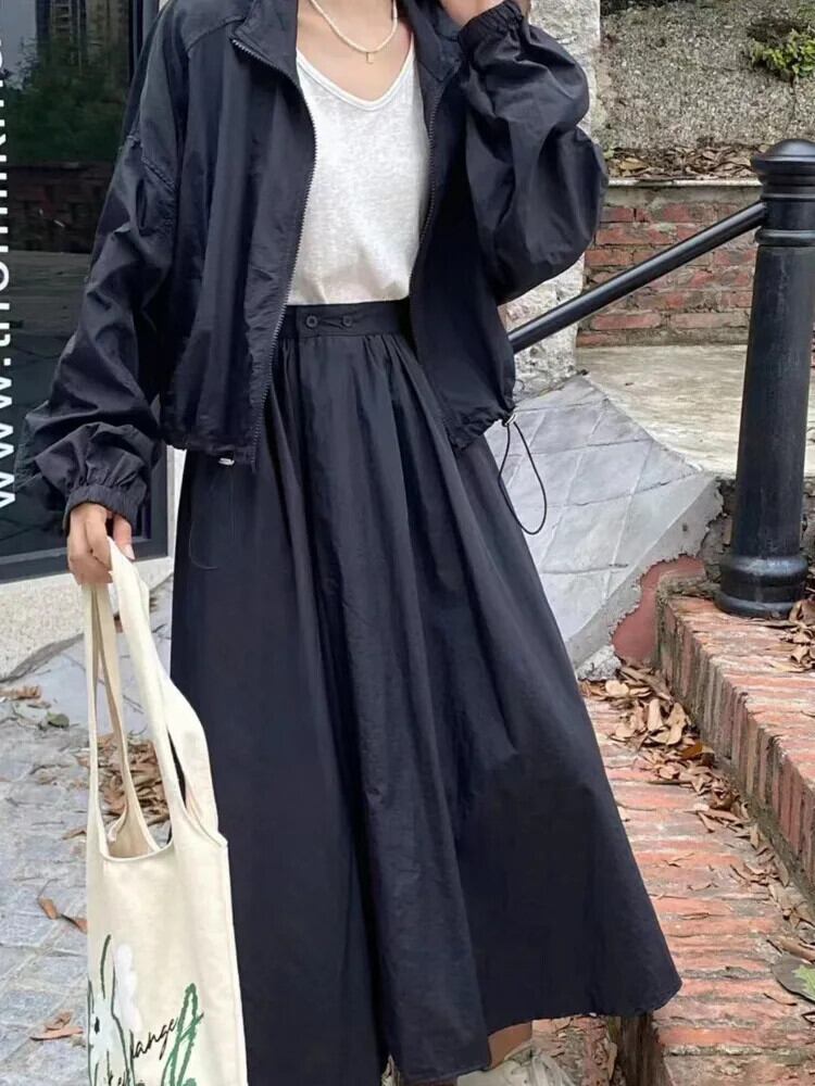 [EWQ] シック ルーズ ジッパー ラペル 日焼け止め コート トップボタン ウエスト スカート 2 点セット 2024 春夏 16U8338 スプリング 春物 サマー 夏物
