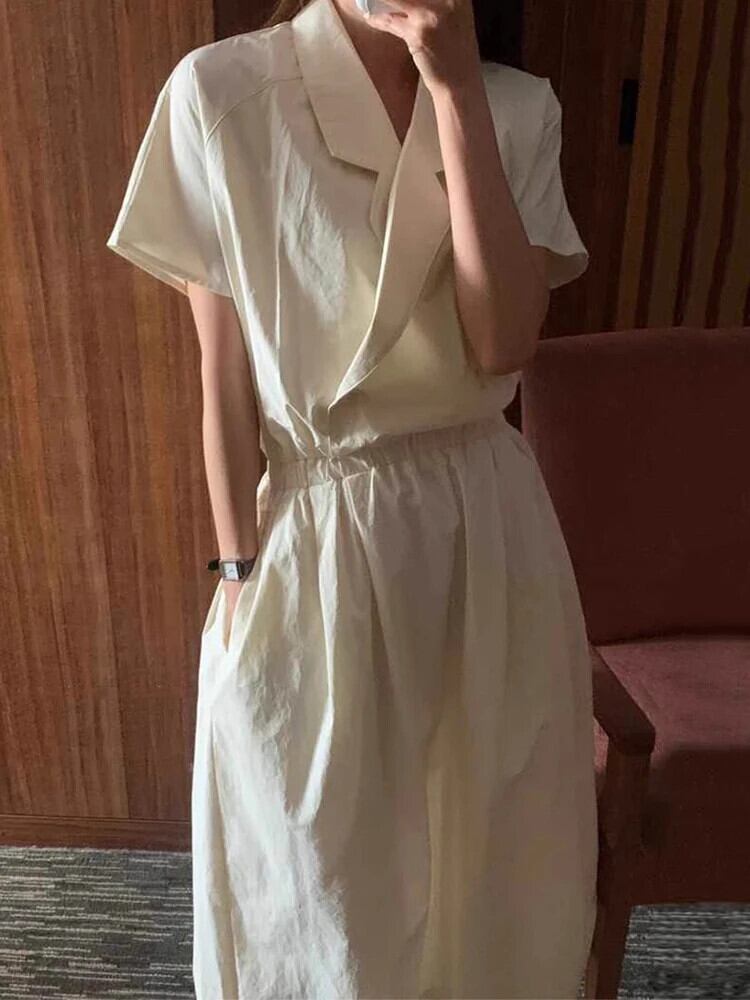 [EWQ] シッククロス ダブルブレスト ラペルカラー 無地 レディース 半袖 ロングワンピース 2024春夏 16U8539 ショート ハーフスリーブ スプリング 春物 サマー 夏物 ソリッドカラー