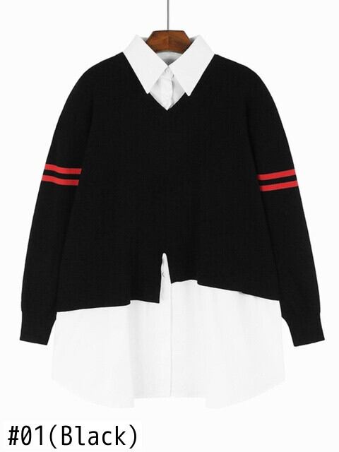 [EWQ] スタイルフェイクツーピースニットプルオーバーシャツルーズオールマッチトップブラウス 2024 春夏 8164 スプリング 春物 サマー 夏物