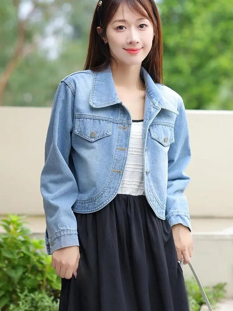 [EWQ] ラペルシングルブレストアウターコートショルダーウォッシュショートジーンズジャケット 2024 春秋 16U8251 スプリング 春物 オータム 秋物